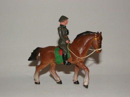 Eine Mischung aus Vollmasse und Hohlmasse ist auch die einzig bekannte Reiterfigur, der Offizier der Grenzpolizei. Während das Pferd aus Vollmasse hergestellt wurde handelt es sich beim Reiter um eine Hohlmassefigur.
